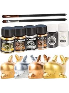 LEOBRO Metallic Mica Powder for Resin, Epoxy Resin Color Pigment, Pigment Powder Dye, for Coloring, Polymer Clay, Paint, Crafts, with Paint Brushes, 6 Colors