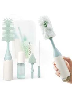 Momcozy Bottle Brush Kit, Innovative Push-Press Design for Better Cleaning - Baby Bottle Cleaner Brush for Baby Bottle, Breast Pumps, Nipples, and More - Can Generate Foam for Better Cleaning, Green