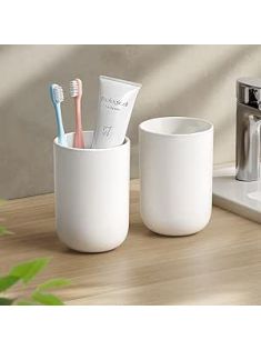 MOPMS Toothbrush Cup 13oz 380ml, Unbreakable Reusable Bathroom Tumbler 2Pcs, Non-Slip Plastic Bathroom Cup Toothbrush Holders for Bathroom White