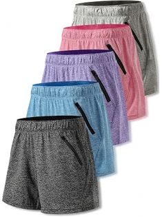 5 Pack: Womens Workout Gym Shorts Casual Lounge Set, Ladies Active Athletic Apparel with Zipper Pockets