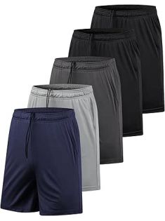 5 Pack Men's Athletic Gym Shorts with Pockets Quick Dry Activewear Workout Running Shorts for Men