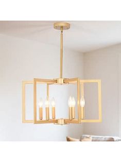6-Light Gold Chandelier, Farmhouse Rustic Dining Room Light Fixture Over Table, Modern Geometric Industrial Metal Hang Lighting Fixtures, for Foyer Entryway Kitchen Island Hallway Bedroom Living Room