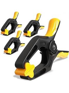 6 inch Spring Clamps Heavy Duty - 4 Pack Large Plastic Clamps for Woodworking, Crafts, Backdrop and Pool Cover with 3 inch Mouth Opening - Rust Free Spring Clips with Non-Detachable Jaw Pads