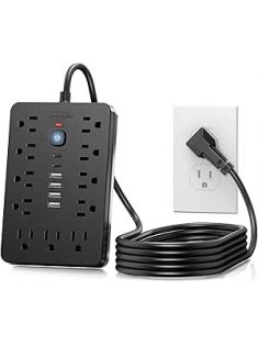 6 FT Flat Plug Surge Protector Power Strip,11 Multiple AC Outlets with 6 USB Ports (2 USB C), 6 Feet Extension Cord, 1875W/15A, One Touch Switch Button, 17 in 1 Compact powerstrip