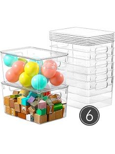 6 Pack Clear Storage Bins with Lids, 7 Quart Stackable Storage Boxes for Storage and Organization, Plastic Storage Containers with Lids, Plastic Bins with Handles for Office, Bedroom, Study Room