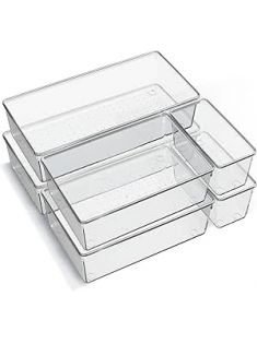6 Pack Large Clear Plastic Drawer Organizer Trays, Acrylic Kitchen Drawer Organization and Storage Dividers, Non-Slip Storage Bins for Makeup, Kitchen Utensils, Bathroom, Jewelries and Office Desk