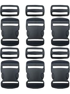 6 Set 1.5 Inch Flat Dual Adjustable Plastic Quick Side Release Plastic Buckles and Tri-glide Slides for Luggage Straps Pet Collar Backpack Repairing (Black, Fit For 1.5”/38mm Webbing Straps)
