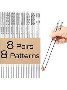 8 Pairs Metal Chopsticks Reusable 18/8 Stainless Steel Chopsticks Set Cute Laser Engraved Non-slip Japanese Korean Chinese Chopstick for Cooking Eating Dishwasher Safe 9.25" Chop Sticks Gift Set