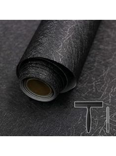 Abyssaly 15.7" X 118" Black Silk Wallpaper Embossed Self Adhesive Peel and Stick Wallpaper Contact Paper Removable Kitchen Wallpaper Vinyl Black Wallpaper Cabinet Furniture Textured Wallpaper