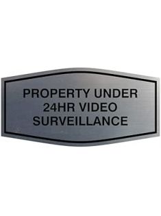 All Quality Fancy Property Under 24Hr Video Surveillance Sign | Property Security Sign with Easy Installation | 24/7 Security Monitoring (Brushed Silver) - Small 5 Pack