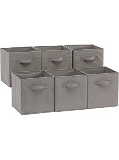 Amazon Basics Collapsible Fabric Storage Cubes Organizer with Handles, 10.5"x10.5"x11", Pack of 6, Gray