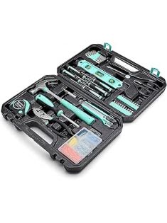 Amazon Basics Sturdy 142 Piece Household Tool Kit With Storage Case, Turquoise, 13.39 x 9.25 x 2.95 inch