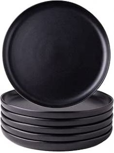 AmorArc Ceramic Dinner Plates Set of 6, Wavy Rim 10.5 Inch Stoneware Dish Set, Large Dinnerware Plates for Kitchen-Microwave&Dishwasher Safe, Scratch Resistant-Reactive Glaze Matte Black