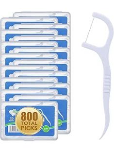 Aussumy 800 Count Dental Floss Picks – Built-in Toothpicks for Deep Cleaning, Comfortable Handle to Remove Plaque & Protect Gums – Family Pack with 50 Picks per Portable Case for Adults & Kids