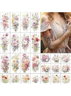 Everjoy Flower Temporary Tattoo Sleeve Sheets, 12 Large Watercolor Floral Tattoo Stickers, 13 Small Fake Flower Tattoo Designs for Women and Girls