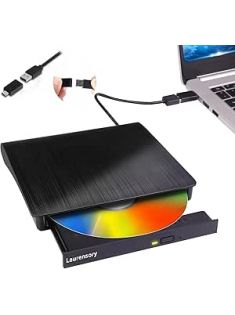 External DVD Drive USB 3.0 Type-C USB Portable Player for Laptop CD DVD +/-RW Disk Drive CD ROM Burner Writer CD/DVD Burner Reader Compatible with Desktop Windows Linux OS Apple MacBook