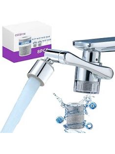 CECEFIN Water-Filter for Sink-Faucet Extender-Aerator - 9pcs Cartridges Reduce Chlorine for Bathroom/Kitchen Skin Face Eye Wash,Brass Faucet Mount Purifier System,1080°Rotating 2-Mode Swivel Aerator