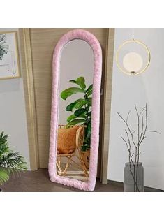 Fluffy Mirror Cover - 59"x16" Full Length Mirror Cover Universal Ultra Soft Non-Slip Cover Free Standing Full Body Mirror Cover Warm Home Decor for Bedroom Cloakroom (Pink-Without Mirror)