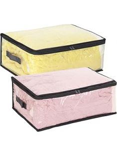 Fixwal 2pcs Small Comforter Storage Bags with Zipper 35L Capacity, Clear Plastic Closet Storage and Organizers for Clothing Sweaters Bedding Blankets