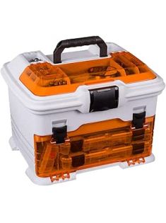 Flambeau Outdoors T4P Pro Multiloader Tackle Box - Portable Fishing Lure Organizer Station With Zerust Anti-RustTechnology, Includes 5 Removable Tuff Tainer Tackle Boxes, White/Orange