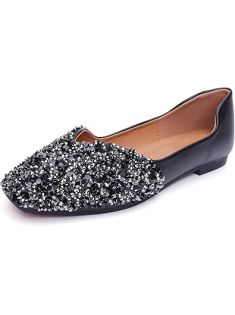 Flats Shoes Women Rhinestone Square Fashion Ballet Flats Wedding Flats for Women Comfortable Slip on Low Heel Dress Shoes
