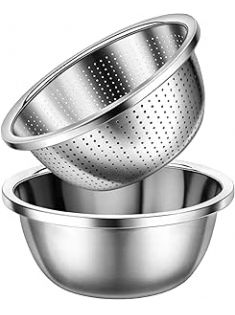 Colander 304 Stainless Steel 3-quart with Mixing Bowls, Strainer for Kitchen Food For washing vegetables, fruit, rice, Dishwasher Safe. (2PC)