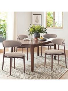 COLAMY Wooden Dining Chairs Set of 4, Modern Fabric Upholstered Kitchen Chairs, Farmhouse Dining Room Chair with Foot Pegs, Camel