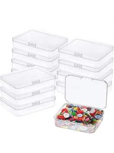 Goiio 12 Pcs Mini Plastic Storage Containers Box with Lid, 5x4x1.3 Inches Clear Rectangle Box for Collecting Small Items, Beads, Game Pieces, Business Cards, Crafts Accessories