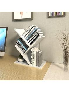 Godferyxin Tree Bookshelf, 3-Tier Book Storage Organizer Shelves Floor Standing Bookcase, Wood Storage Rack for Office Home School Shelf Display for Cd/Magazine-White