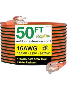 Go Green Power Inc. 16/3 50-Foot Outdoor Extension Cord - Heavy-Duty, Weatherproof, GG-13750