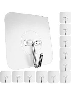 GLUIT Adhesive Wall Hooks for Hanging Heavy Duty 22 lbs Hooks for Walls No Damage, Towel Sticky Clear Hooks, Waterproof, Home, Bathroom, Kitchen, Office, and Outdoor 12 Pack