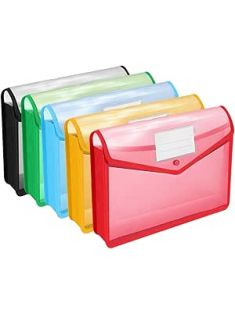 Go&Fan 5 Packs Expanding File Folder,no dividers,File Wallet Document Folder,Plastic envelopes with snap Closure,Paper Organizer Folder with Lable Pocket (Colorful) Fit Letter/A4 Size