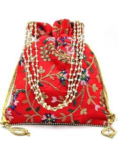 Indian Handmade Potli Bag Women's Embroidered Clutch Purse Pouch Drawstring Bag Wedding Favor Return Gift For Guests