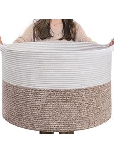 INDRESSME XXXLarge Cotton Rope Basket 21.7" x 21.7" x 13.8" Woven Baby Laundry Blanket Basket Toy Basket with Handle Storage Comforter Cushions Thread Laundry Hamper