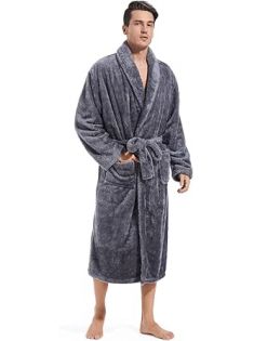 Inner Wish Mens Plush Fleece Robe, Cozy Warm Bathrobe Fuzzy Male Spa Long Robe With Pockets (DARK GREY)