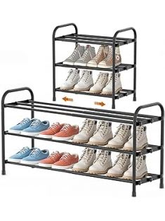 INSMART 3-Tier Expandable Shoe Rack, Stackable and Adjustable Shoes Organizer Storage Shelf, Sturdy and Durable Metal Structure Free Standing Shoe Rack for Closet Entryway Doorway