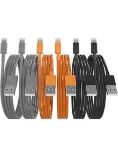 iPhone Charger Lightning Cables [Apple MFi Certified], 3/3/6/6/6/10 ft, Nylon Braided Fast Charging for iPhone/iPad, 6 Pack, Gray/Orange/Black