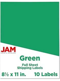 JAM PAPER Full Sheet Shipping Labels - Printable Sticker Paper - 8 1/2 x 11 - Green - 10 Full Pages/Pack
