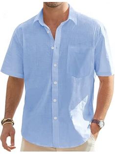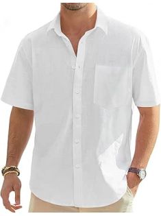 J.VER Men's Linen Short Sleeve Shirts Cotton Casual Lightweight Button Down Shirt Beach Vacation Summer Tops with Pocket
