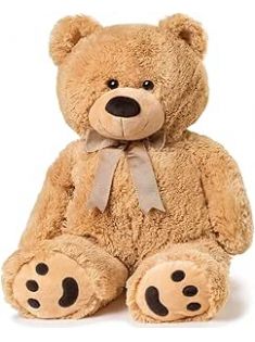 JOON Big Teddy Bear - Fluffy Fur, Ribbon & Bow Signature Footprints- Huggable & Lovable Joy - Ideal Gift for Baby Showers, Loved Ones – Perfect Big Cuddly Plush Toy Companion, 28 Inches, Tan