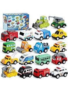 JOYIN 18 Pcs Pull Back City Cars and Trucks Toy Vehicles Set, Friction Powered Cars Toys for Toddlers, Boys, Girls’ Educational Play, Goodie Bags Stuffers