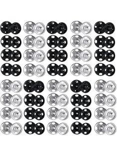 JOSDIOX 100 Sets 0.39 Inch Sew on Snap Buttons Metal Snap Fastener Buttons Press Button for Sewing Clothing Silvery and Black (10mm)