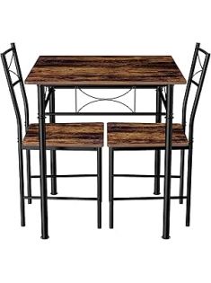 JOIN IRON 3-Piece Kitchen Dining Room Table Set for Small Spaces,Iron Wood Square Table with 2 Chairs for Kitchen Dining Room Furniture