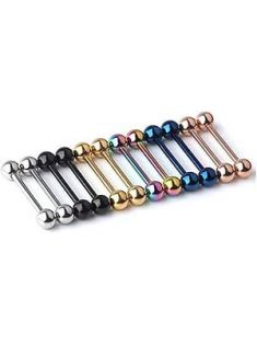 Kiokioa 12pc 14G Mix-color Stainless Steel Straight Barbell Tongue Rings Bars Piercing 5/8" Length