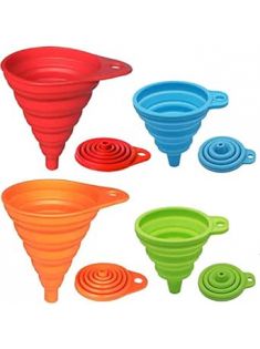 KongNai Kitchen Funnel Set 4 Pack, Small and Large, Kitchen Gadgets Accessories Foldable Silicone Collapsible Funnels for Filling Water Bottle Liquid Transfer Food Grade