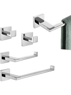 KOKOSIRI 5-Piece Bathroom Hardware Set Bath Accessories, 24'' Towel Bar 9'' Towel Holder Toilet Paper Holder Robe Hooks Polished Chrome Stainless Steel B12A5-CH