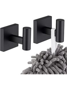 KOKOSIRI Robe Hook Bathroom Towel Coat Hooks Matte Black for Bath Kitchen Wall 2 Pack Stainless Steel B1013BK-P2