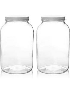 kitchentoolz 1 Gallon Glass Jar with Lid Wide Mouth Large Mason, Leak Proof Airtight Metal Lid for Fermenting Kombucha Kefir Kimchi, Canning, Egg Water Glassing, & Preserving - Made in USA -Pack of 2