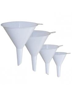 KongNai 4 Pieces Plastic Funnel Set for Kitchen and Automotive Use, Mini, Small, Medium and Large Funnel for Filling Bottles, Canning, Cooking, Lab or Car Oil Funnels (White)
