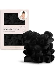 Kitsch Satin Scrunchies for Women – No Crease Hair Ties – Soft Satin Hair Scrunchies for Girls – Frizz Free, Gentle, Stylish Hair Accessories – Black, 5 pcs